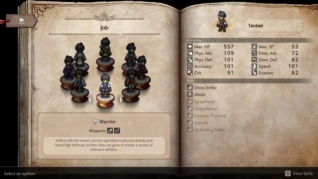 The employment framework in Octopath Traveler 0 functions differently than traditional RPG systems. Your main character begins by choosing from eight available professions after finishing the introductory segment. Each occupation provides two pre-unlocked Battle Skills immediately accessible, complemented by five additional abilities purchasable using JP (Job Points) accumulated through combat engagements.