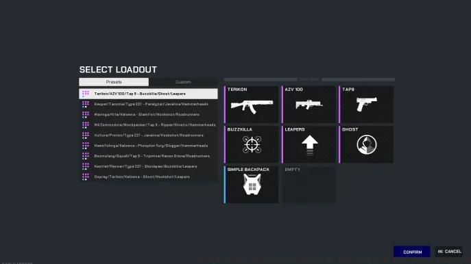 - Test 3 preset loadouts noting performance differences