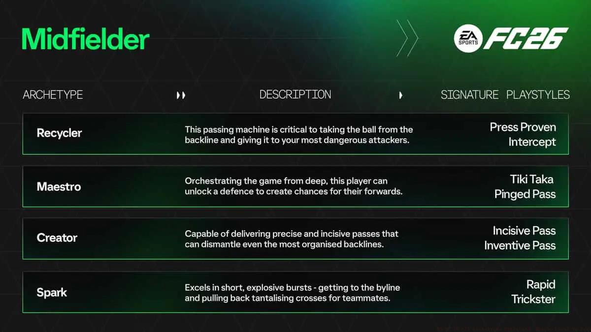 6TL;DR EA FC 26 introduces 13 specialized Archetypes replacing generic player development with football legend-inspired roles Each Archetype features unique Signature PlayStyles and...