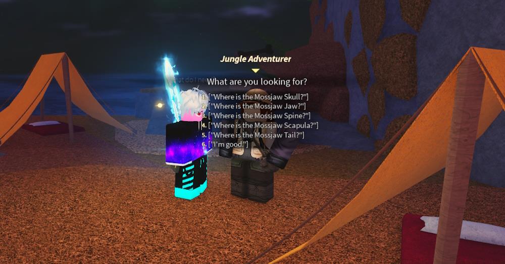 8TL;DR Start quest at Jungle’s Echo Island (-3120, 142, -1153) by speaking with Adventurer NPC Collect all 5 Mossjaw bones by fishing at specific coordinates across Fisch isla...