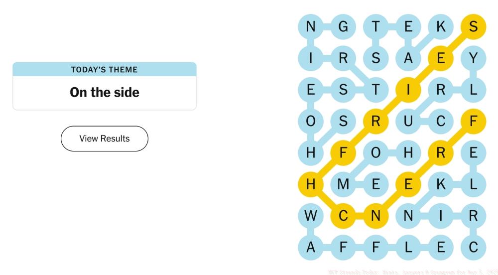 1TL;DR Today’s Strands theme ‘On the side’ focuses on food accompaniments and accessories The vertical Spangram starting with ‘FR’ connects all theme w...