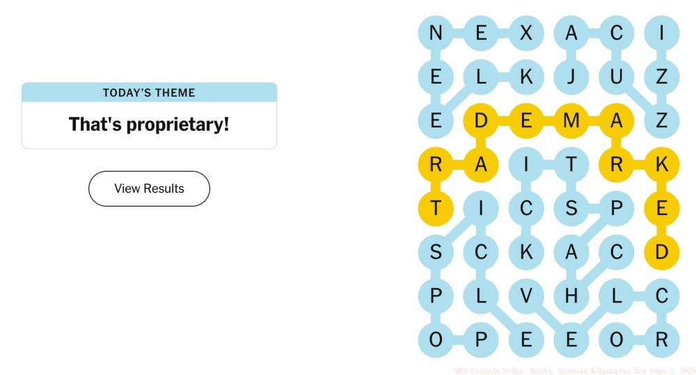 1TL;DR Today’s Strands theme “That’s Proprietary!” focuses on trademarked brand names and products The Spangram runs horizontally starting with “TRR...
