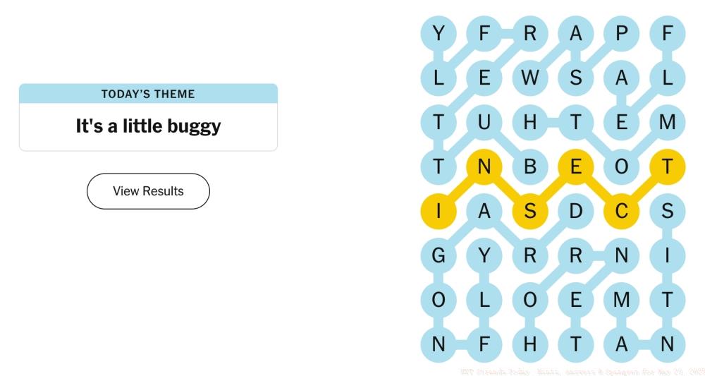 1TL;DR NYT Strands challenges players to find theme-related words in a letter grid with one spanning Spangram Today’s “It’s a little buggy” theme focuses on ...